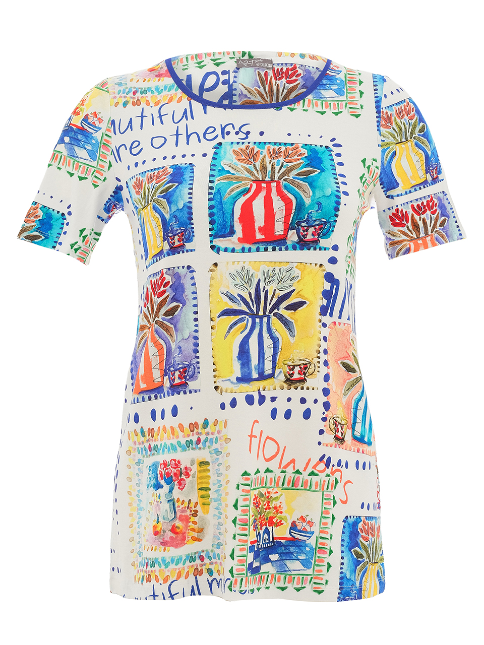 Dolcezza – 26621 – White/Multi – Top – ” My Handmade Garden” Artist By Basak Erarslan.