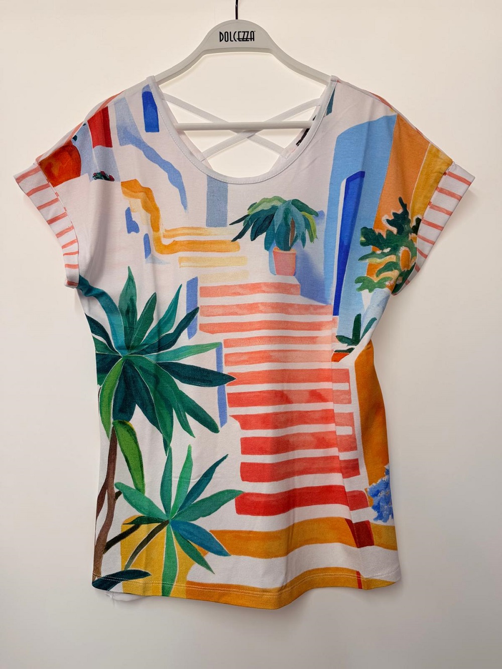 DOLCEZZA Colourful Palm Tree Print Stretch Top