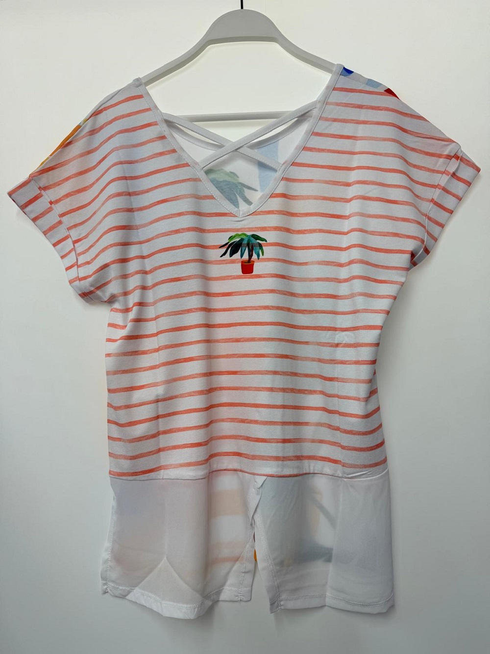 Stylish top with quirky palm tree detail at the back in lightweight stretch material