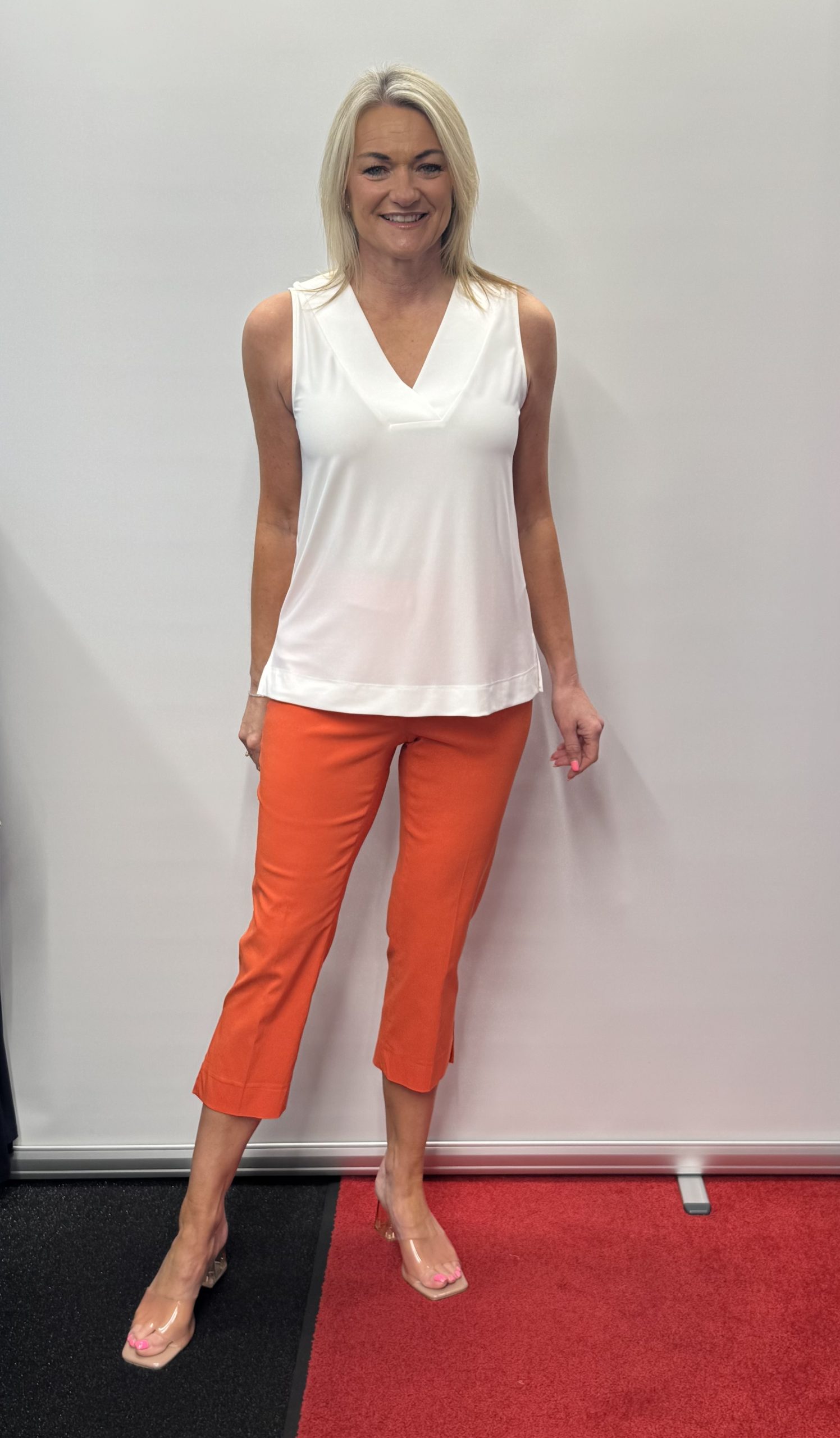 Ficelle – Crop Pant – Orange – From Paris are the perfect addition to any wardrobe. They come in a wonderful array of colours and the simple pull on style make them easy to wear. The Ficelle trousers are a favourite with many customers choosing to add more colours each season. These Trouser are a must as they can be worn any time day or evening.