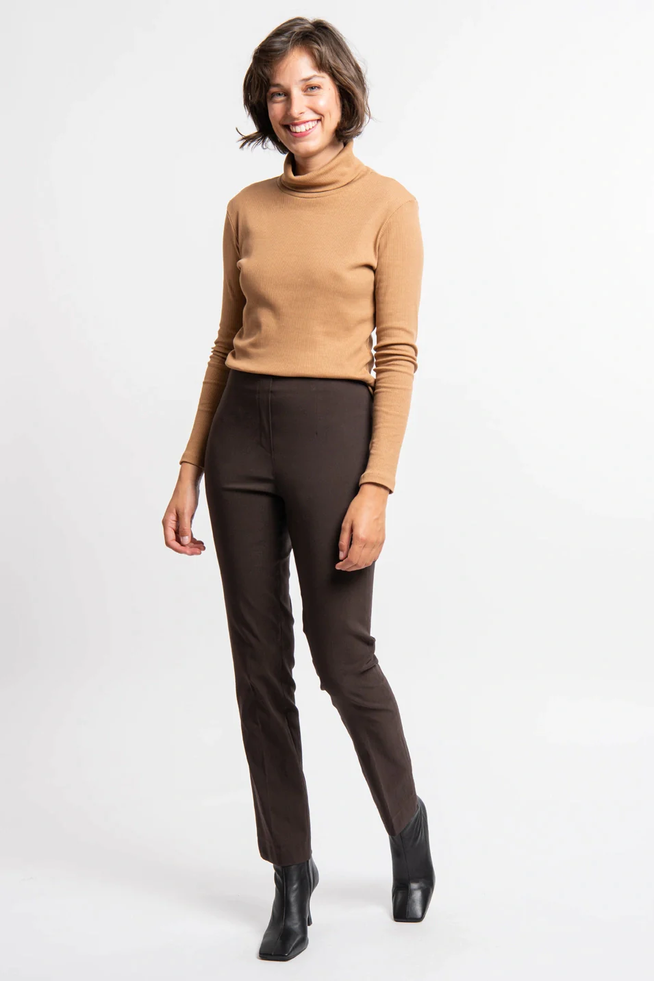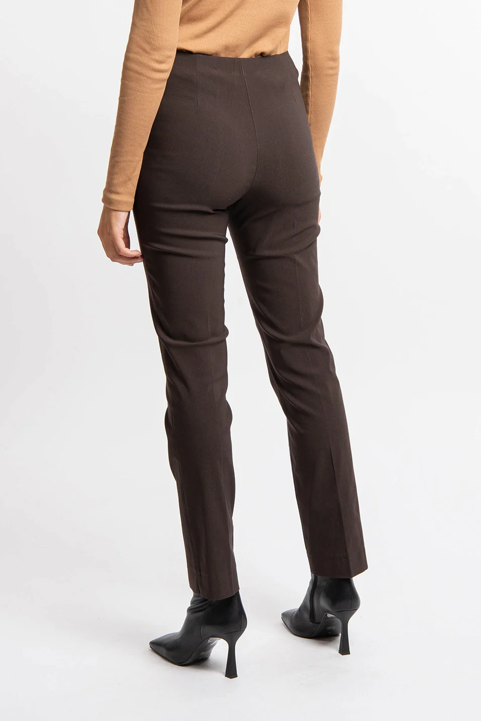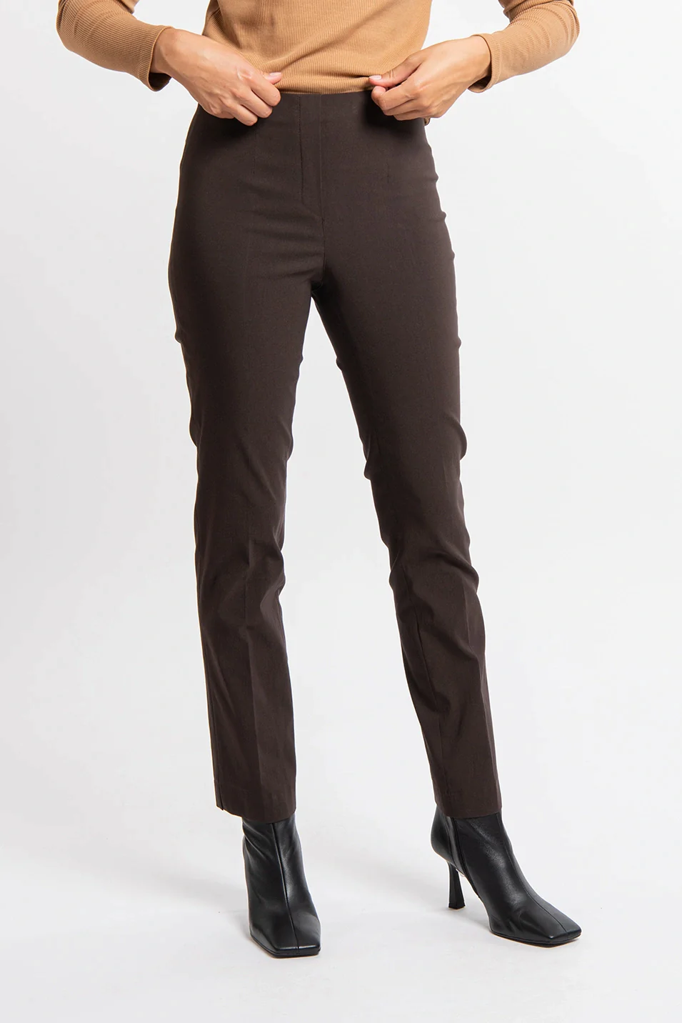 The French Collection – Ficelle Long Trouser – Chocolate – The LIZE pants are high-waisted pants with a straight, fitted cut. Thanks to its elastic at the waist, it is very easy to put on.