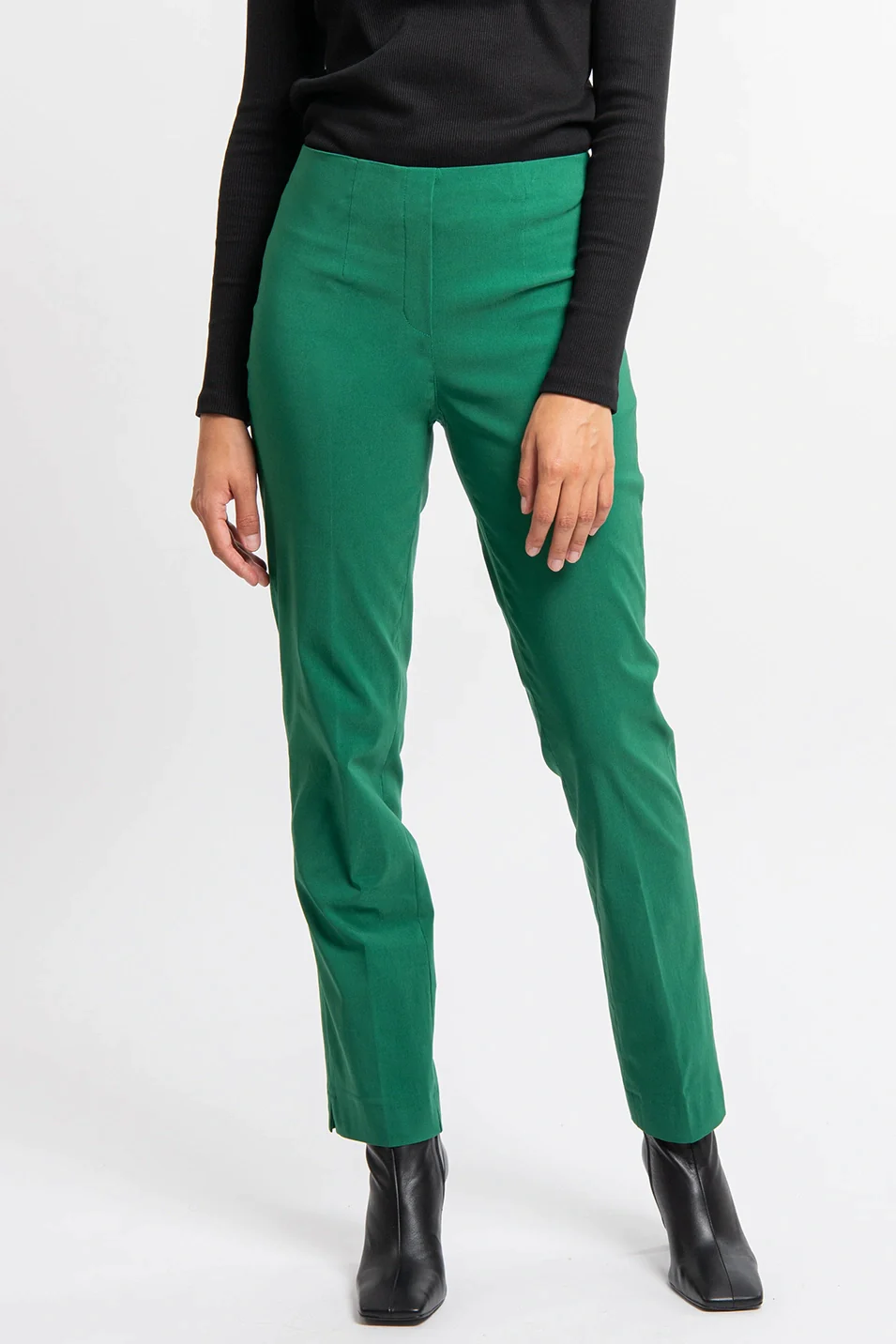 The French Collection – Ficelle Long Trouser – Green – ( Lighter Weight Fabric ) – British green high-waisted trousers with a straight, fitted cut.