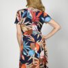 Frank Lyman – 236311 – Multi Print – Dress – Lets feel the tropical vibes with this stunning dress by Frank Lyman! This vibrant multi print dress has a cross over V-neckline with ruched detail to the left of the waist. This flattering dress has great movement to the skirt and short sleeves for that added cover, the perfect addition to your holiday wardrobe.