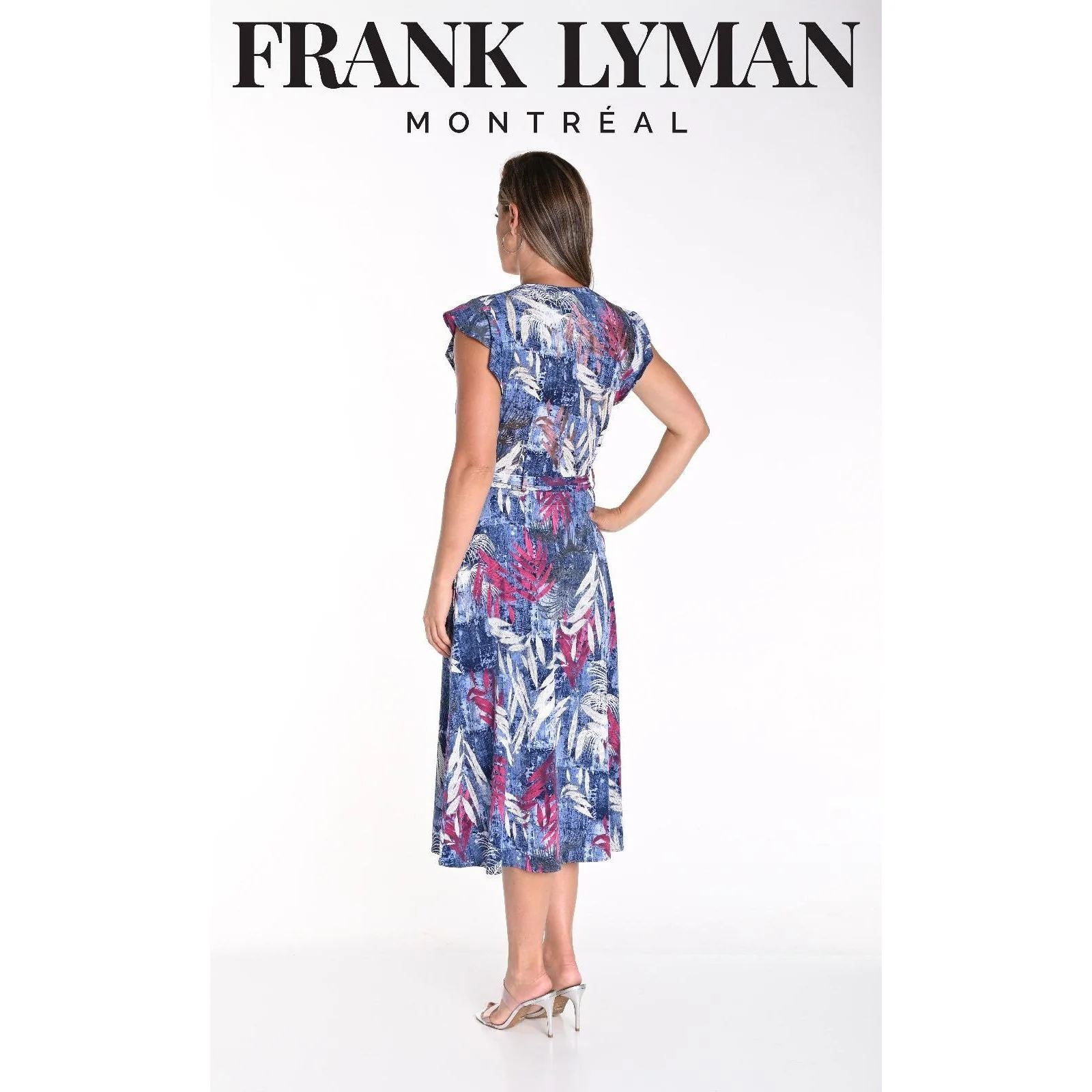 Frank Lyman – 241238 – Blue Multi – Dress – Palm Leaf Pocket Dress – Add a touch of effortless femininity to your wardrobe with the Frank Lyman frill sleeve dress, with button front. The delicate sleeve adds a subtle, yet elegant detail to this dress, making it perfect for any occasion. Elevate your style game with this must-have piece.