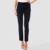 Joseph Ribkoff – 143105 – Navy – Trouser – Sleek and sassy pant in a polyester and Spandex blend fabric. High elastic waist for a stylish fit in easy to wear comfortable style. Gorgeous cut flatters waist and legs. Hem falls at the ankle with large split sits beautifully with tops, tunics, sweaters, and more.