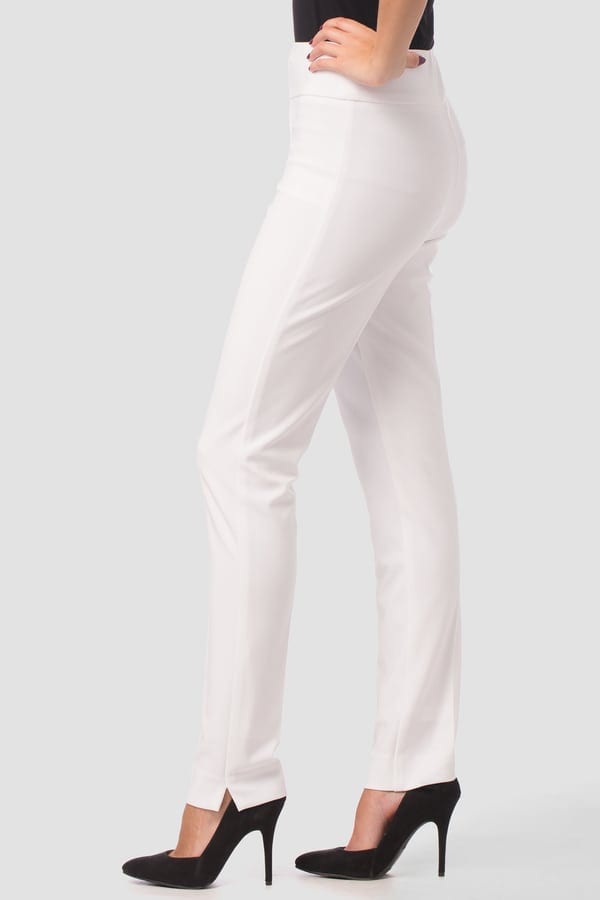 Joseph Ribkoff – 144092 – White –Â These are the perfect trousers to transition from day to evening. These trousers are stylish during the day and elegant in the evening paired with the right top or tunic. These slim fit trousers from Ribkoff are a slimmer fit that tappers from thigh to leg opening. The slim fit creates a sophisticated and flattering silhouette.