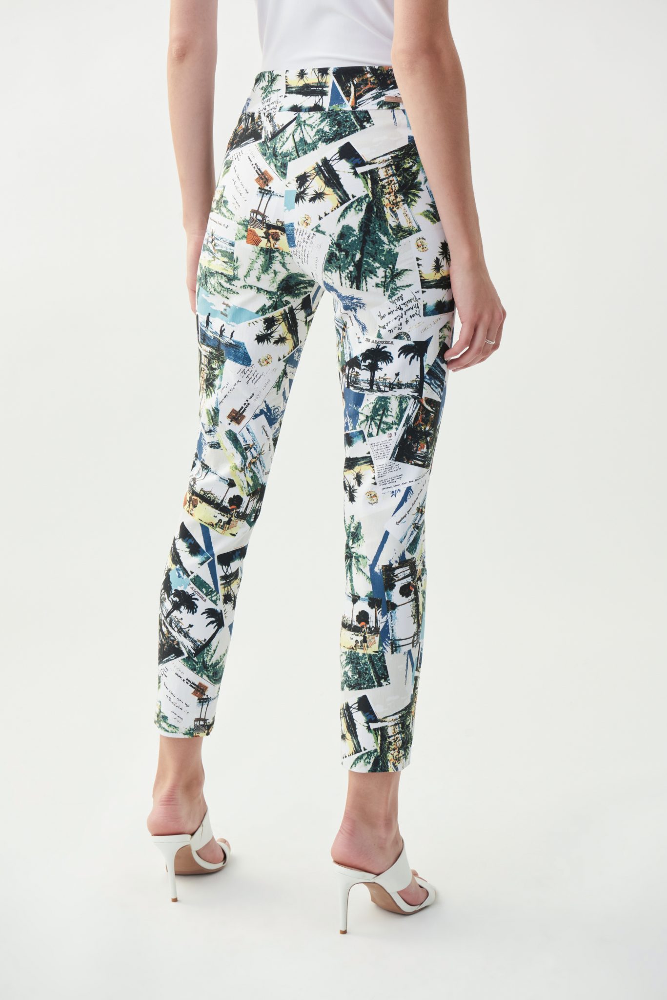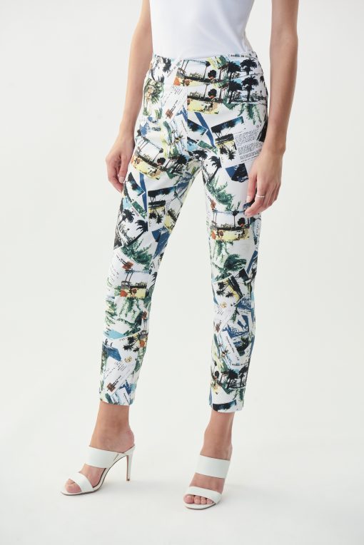 Joseph Ribokff – 221005 – White/Multi – Pant – Fabulous capri pant in fun Tropical Postcard Print.