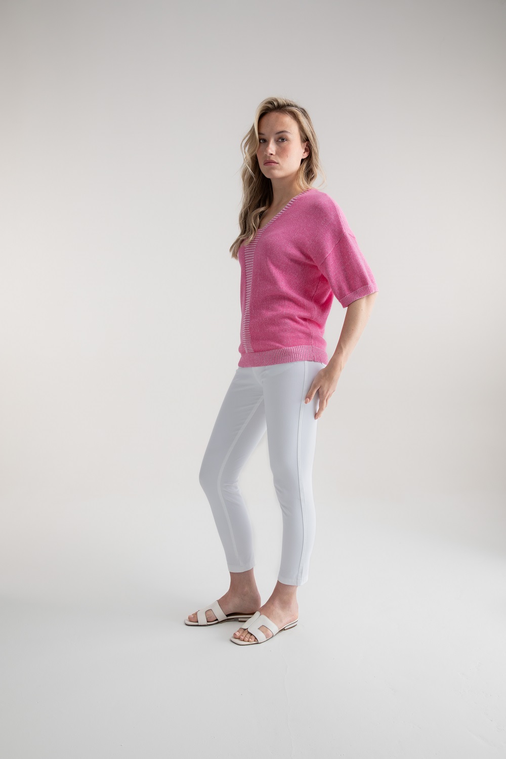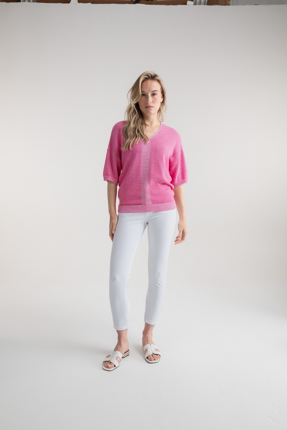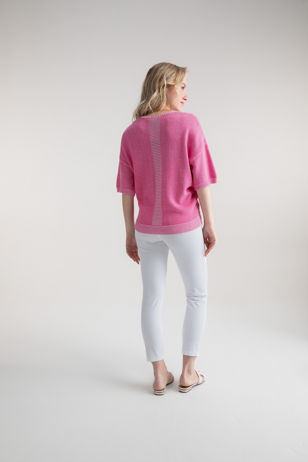 Marble – 7884-194 – Pink – Sweater – Super soft 100% cotton twisted yarn oversized fit sweater with centre front and centre back knit detail