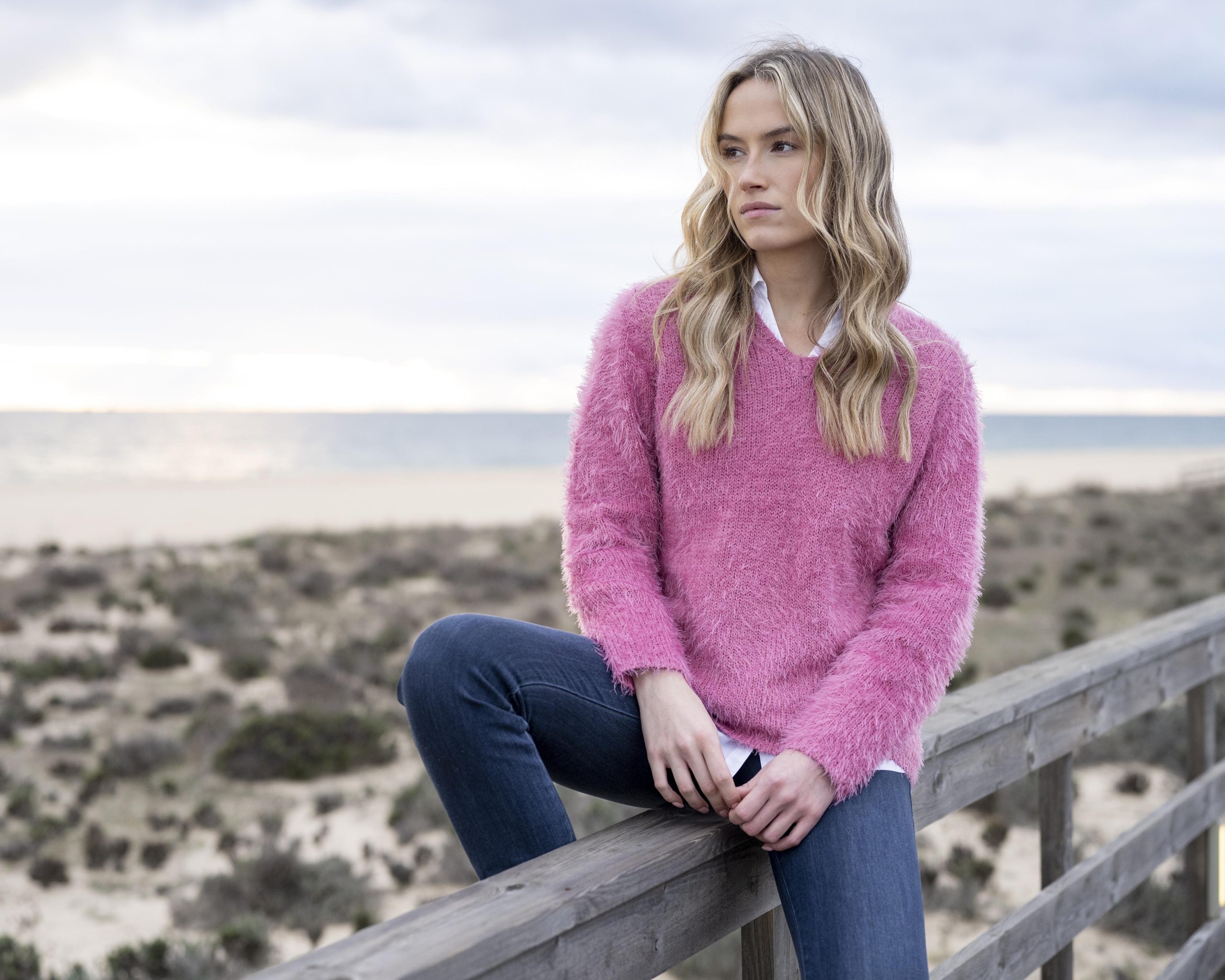 Marble – 8032-230 – Pink – Sweater – A cosy seasonal layer, the Marble 8032 Jumper With Detachable Cowl Neck blends soft texture with versatile styling. Designed in a plush feather yarn, it offers warmth and relaxed structure with detachable detailing.