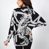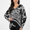 Frank Lyman – 224169 – Black/Grey – Knit Top – This very easy to wear lightweight knit top from Frank Lyman features a flattering zip V-neckline with circular zip. The top is designed with full length batwing sleeves and a curved hemline that dips at the back for a flattering fit.