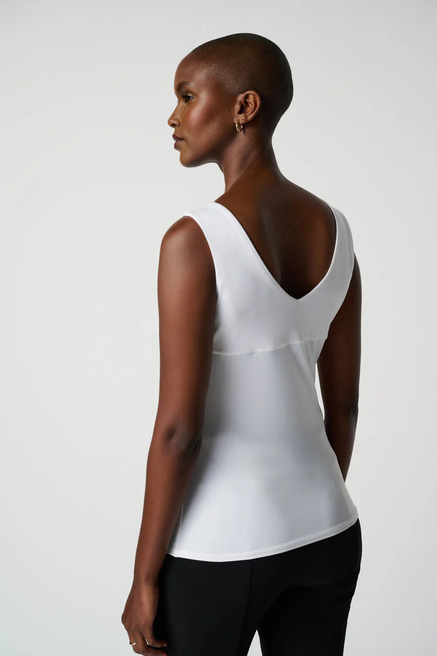 Joseph Ribkoff – Cami – 201546 – Vanilla – Discover the ultimate blend of comfort and style with the Joseph Ribkoff top. This fitted, hip-length piece features a flattering v-neck and sleeveless design, perfect for casual summer occasions. The plain pattern adds a chic touch to any outfit, making it a versatile addition to your wardrobe. Ideal for those seeking a sleek, casual look with a touch of sophistication.