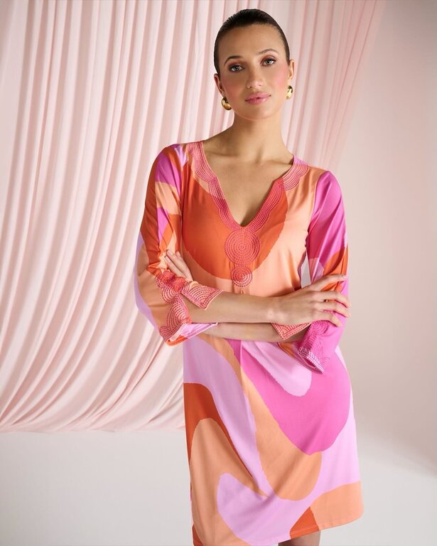 K.Design – C309-P101 – Pink/Orange – Dress – New Season , new dress featuring a lively pattern design for elegant , standout look.