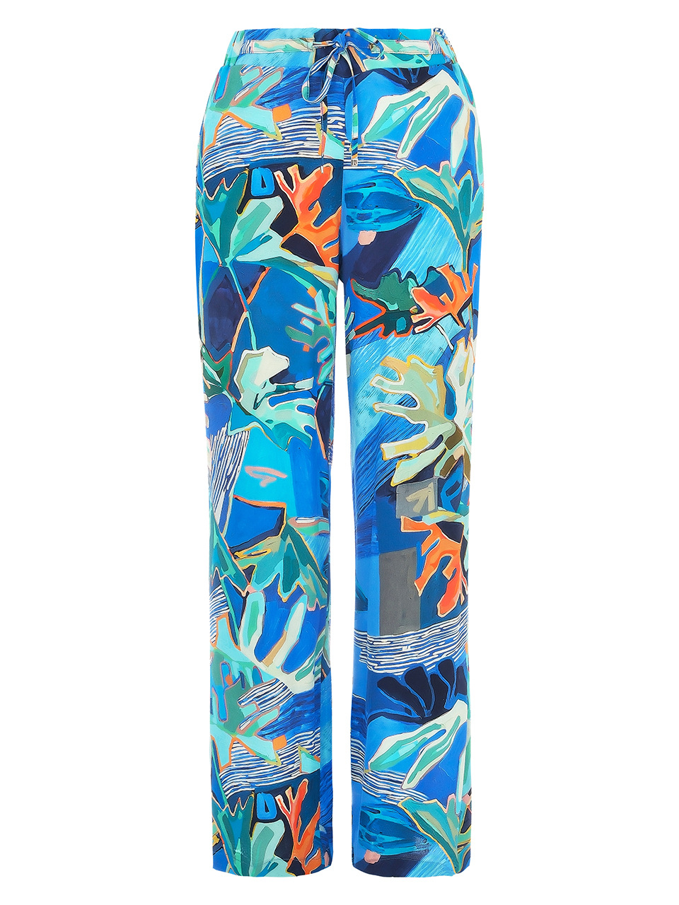 Dolcezza – 25684 – Blue/Multi – Trouser – Artist  Mary Singleton, USA, Print, Palmetto – You’ll be cool and stylish in these colourful ‘under the sea’ pants! Perfect for office work or the weekend, these light pants are designed with all viscose fabric, straight leg and stretch band drawstring waist. Indeed, wear it everyday!