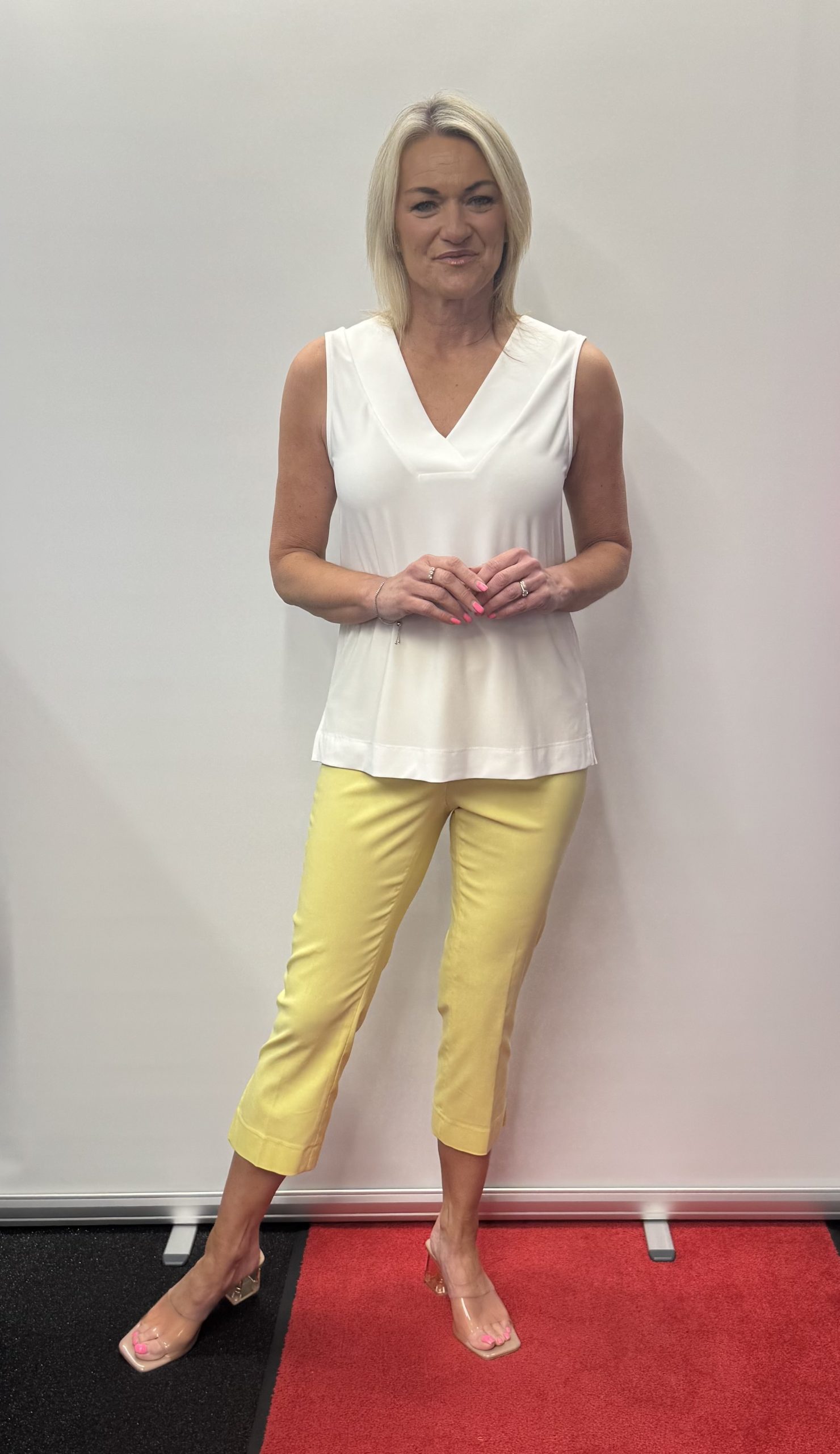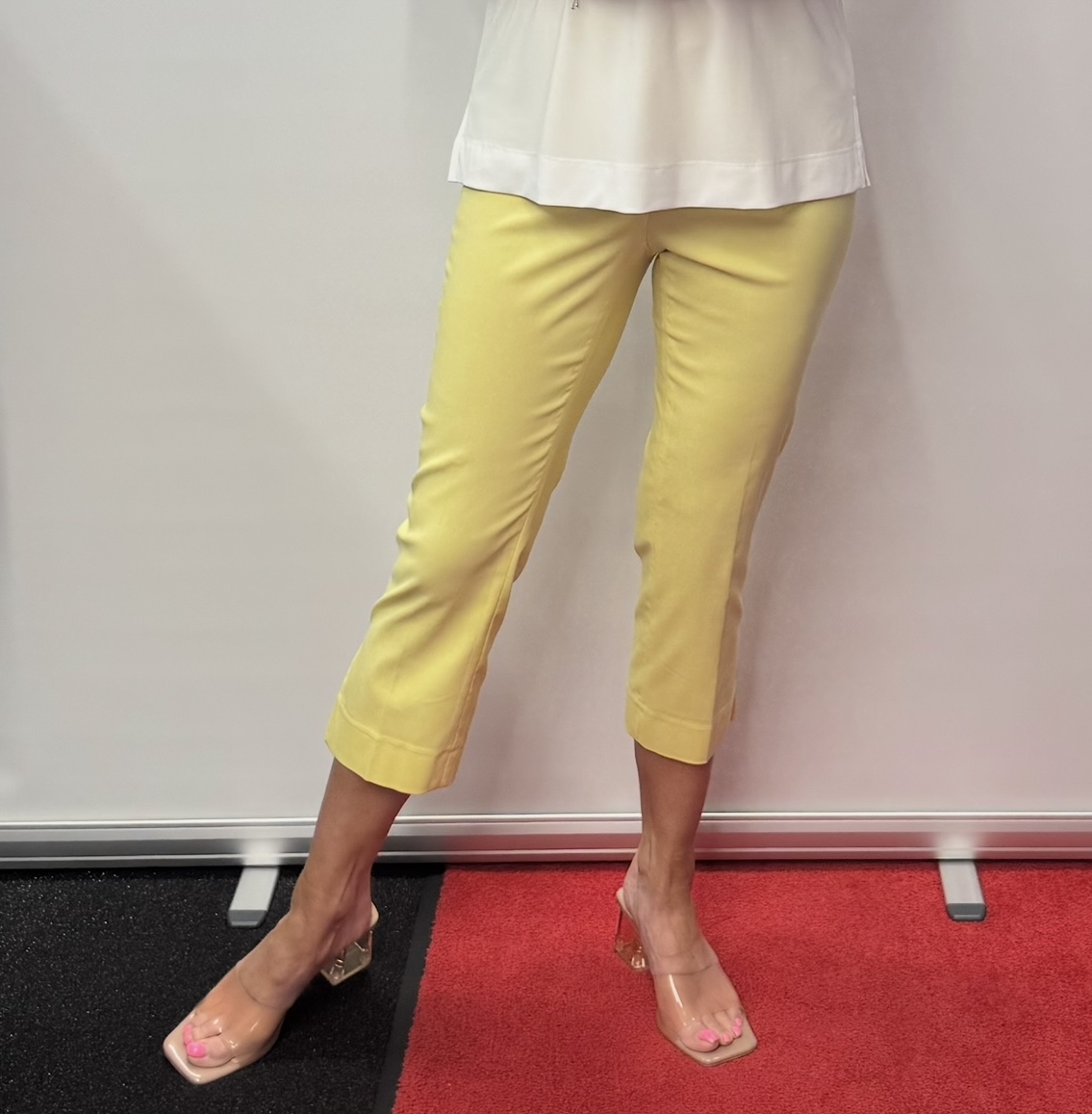 Ficelle crop Pant – Yellow – From Paris are the perfect addition to any wardrobe. They come in a wonderful array of colours and the simple pull on style make them easy to wear. The Ficelle trousers are a favourite with many customers choosing to add more colours each season.  These Trouser are a must as they can be worn any time day or evening.