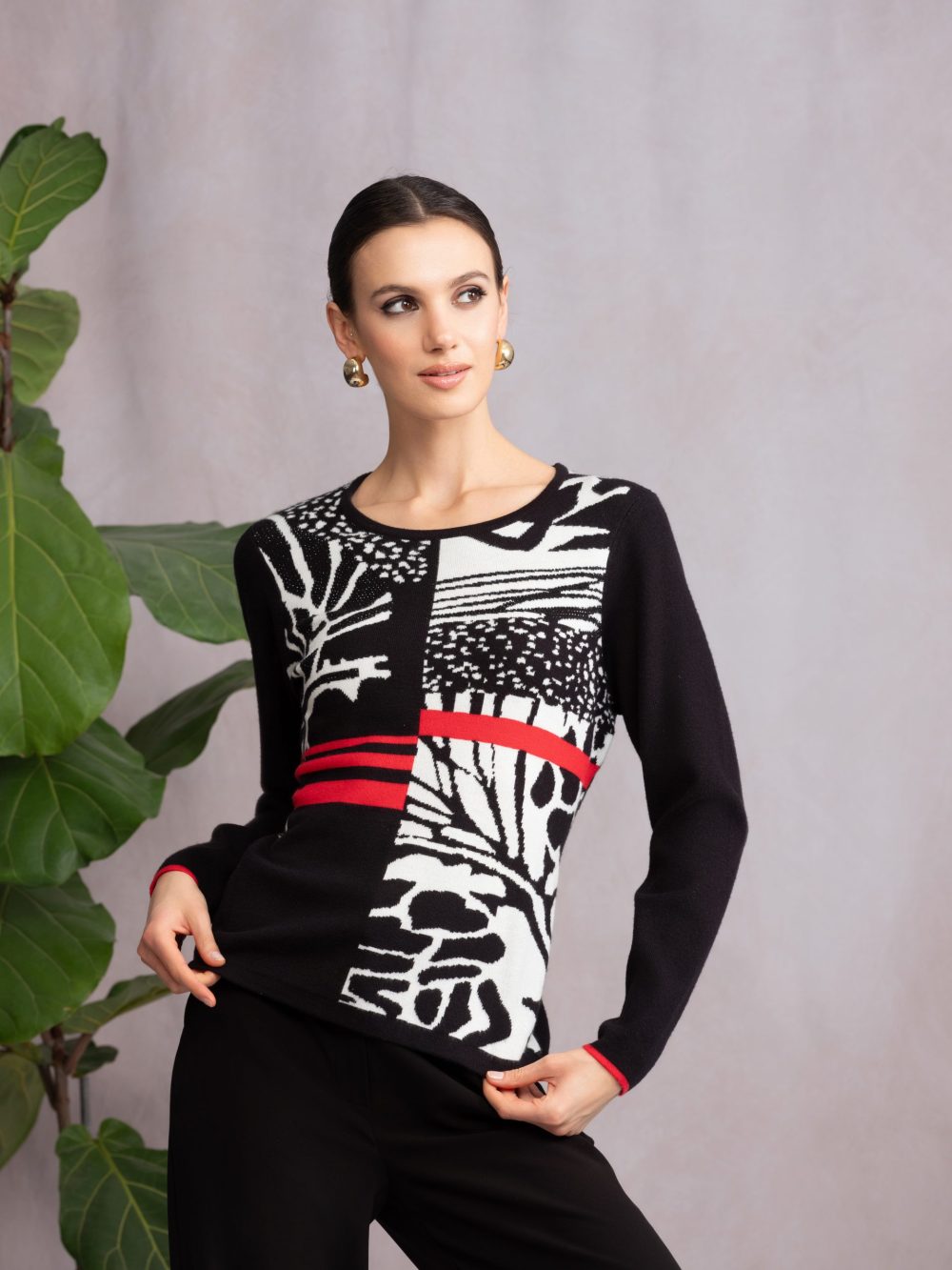 Alison Sheri – A46470 – Black/Red/White – Sweater –